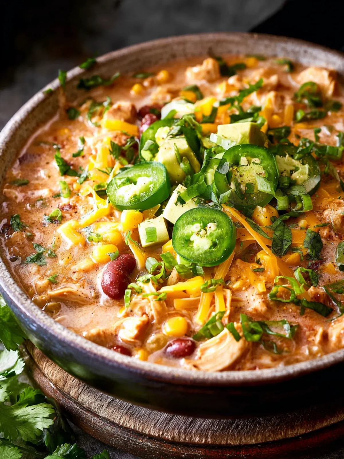 A hearty and creamy soup made with chicken, beans, and corn, perfect for a cozy meal.