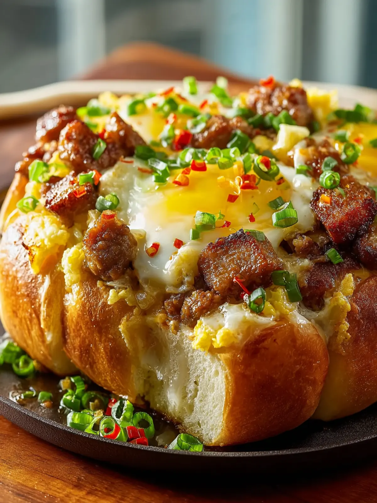 Your creation will need about 30 minutes in the oven. This is when the magic happens—those Hawaiian rolls will puff up beautifully, soaking in all the savory flavors from the eggs and beef sausage.