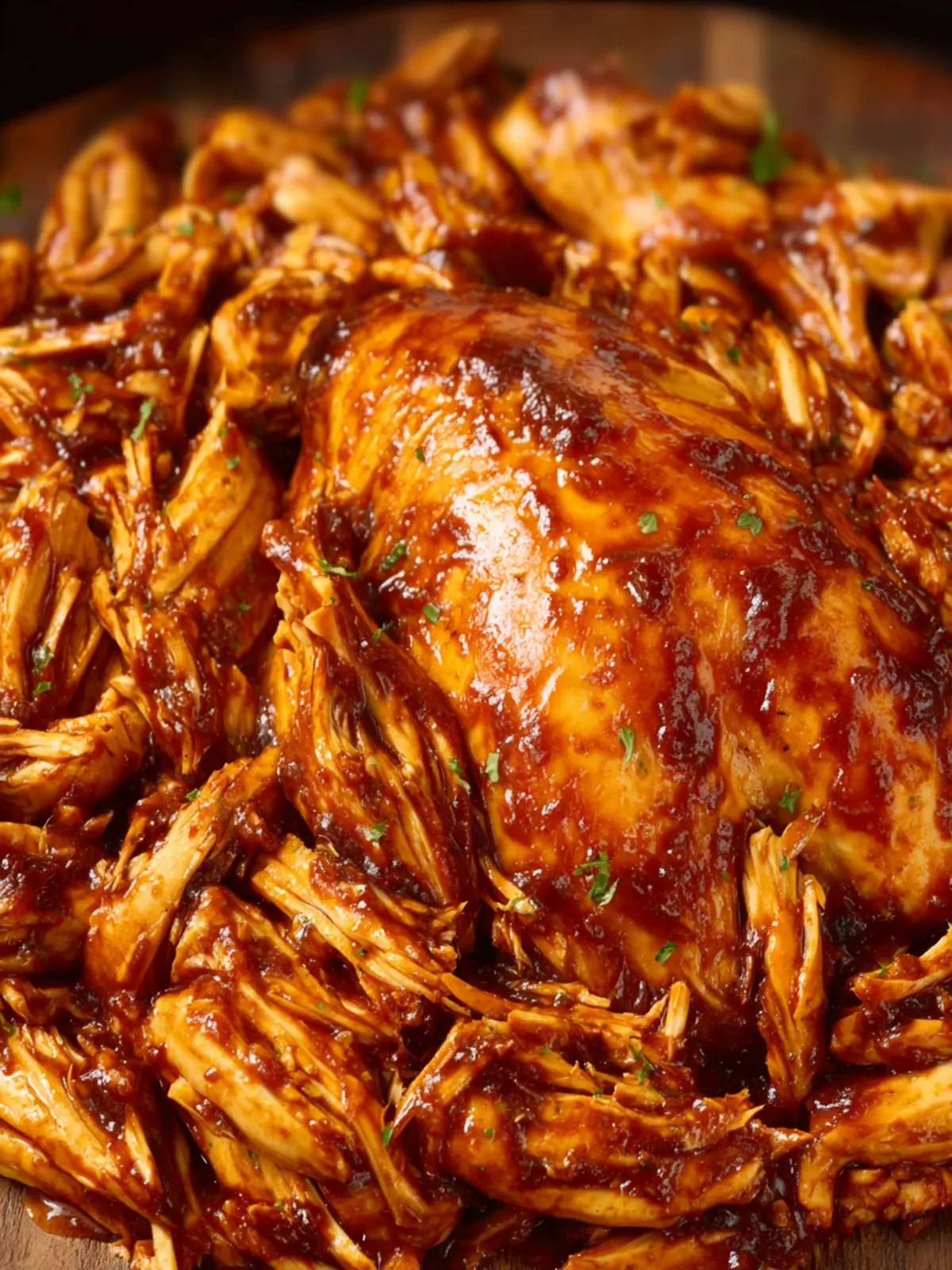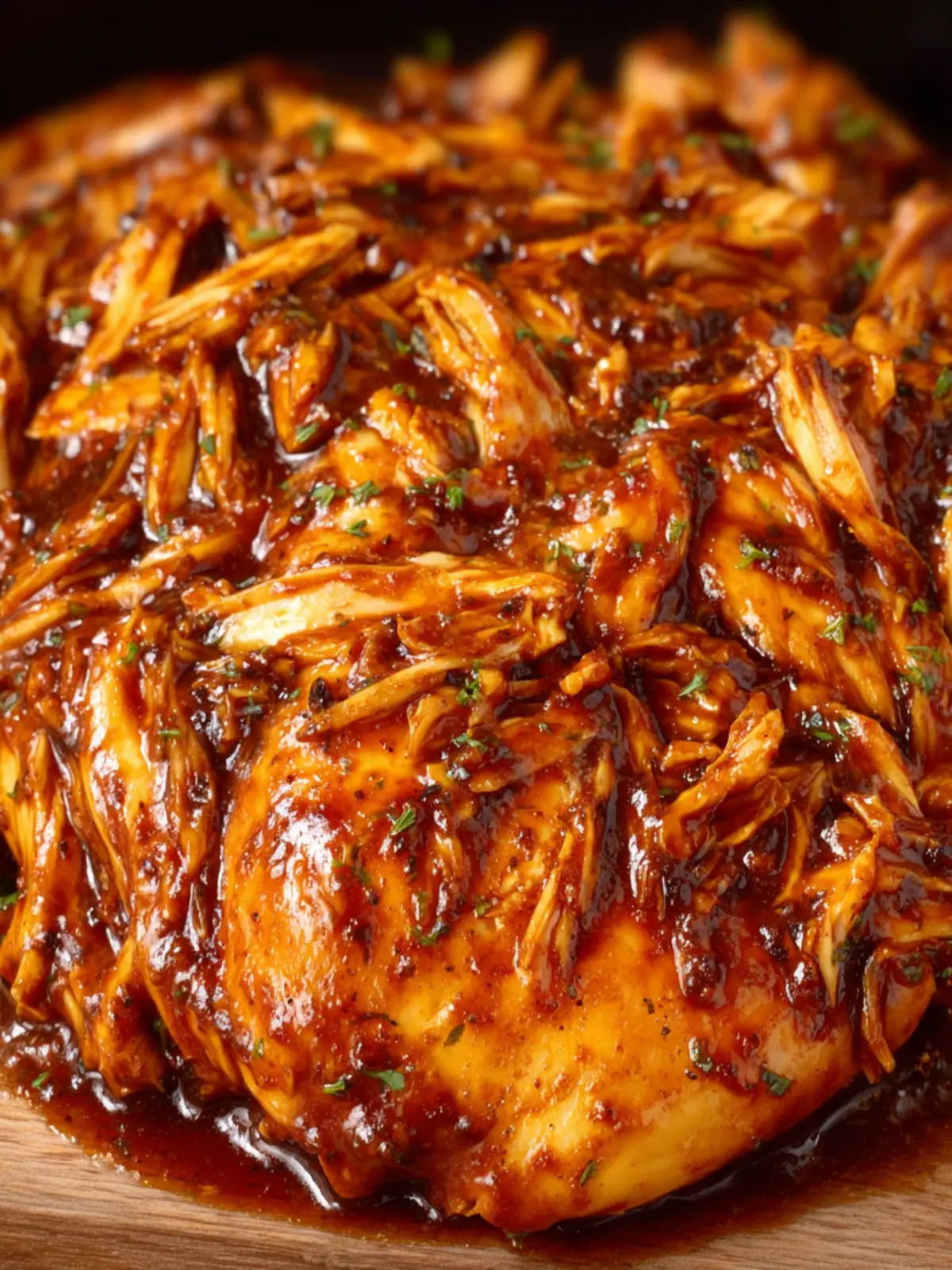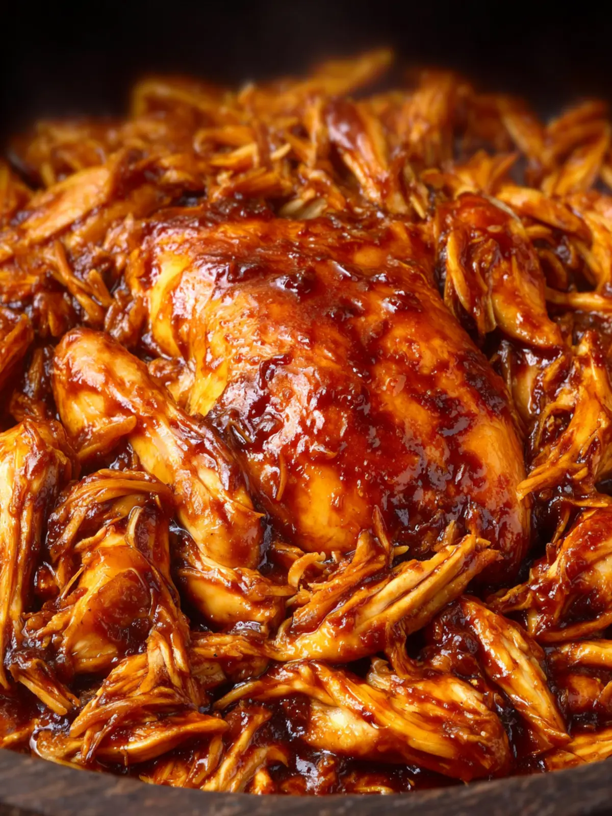 Once cooked, shred the chicken with two forks right in the crockpot. This allows every bite to soak up more sauce and enhances the overall flavor.
