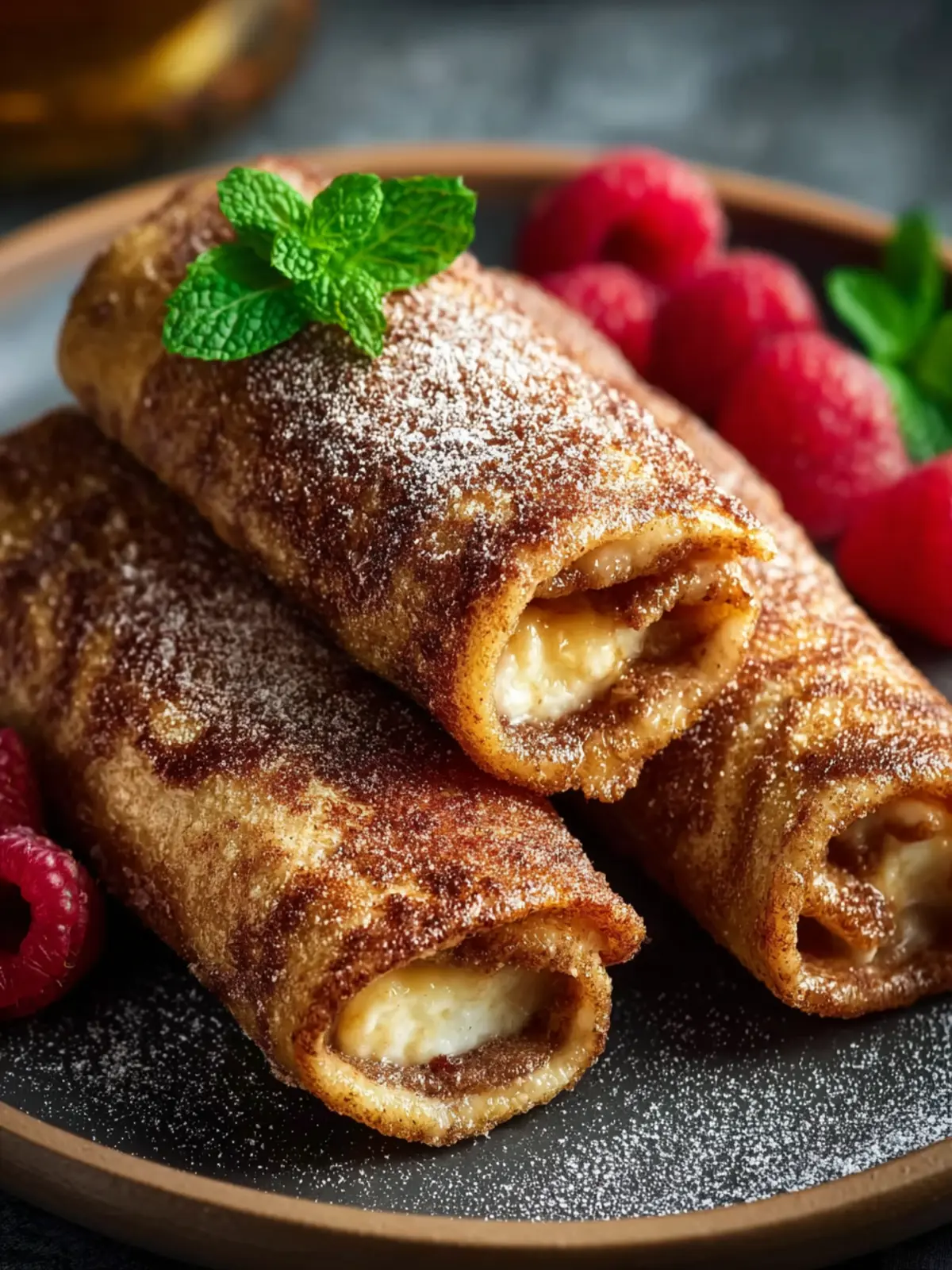 Enjoy these delightful French toast roll-ups filled with your choice of tasty spreads, perfect for a cozy breakfast.