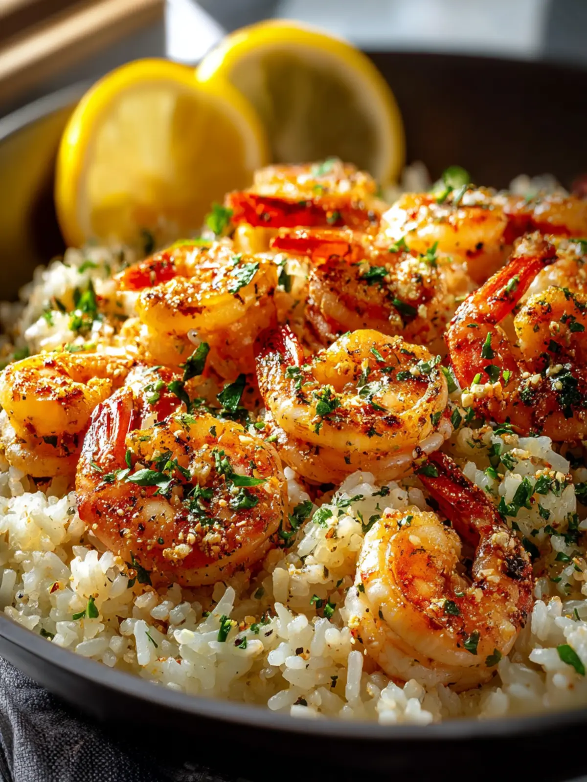 - Combine and Finish: Fluff the rice with a fork, stir in the reserved shrimp, add fresh lemon juice, and sprinkle with parsley or chives. Toss gently to combine.
