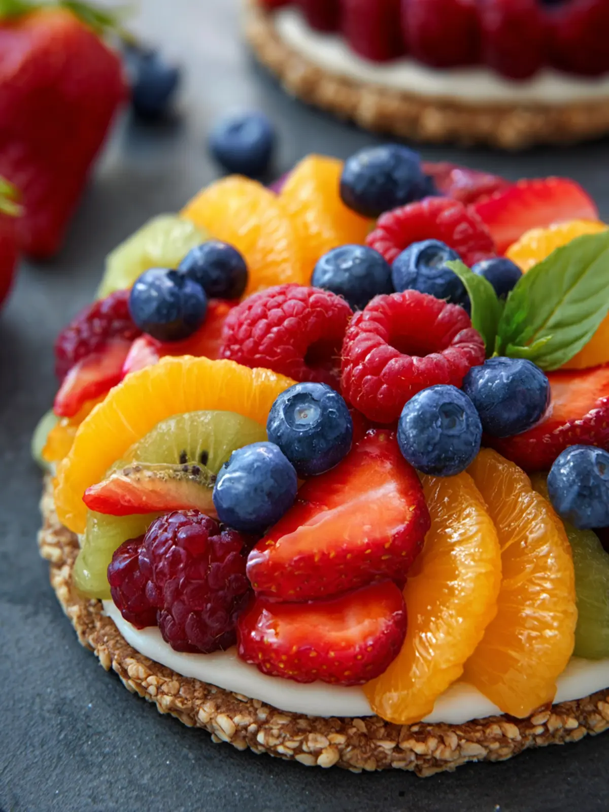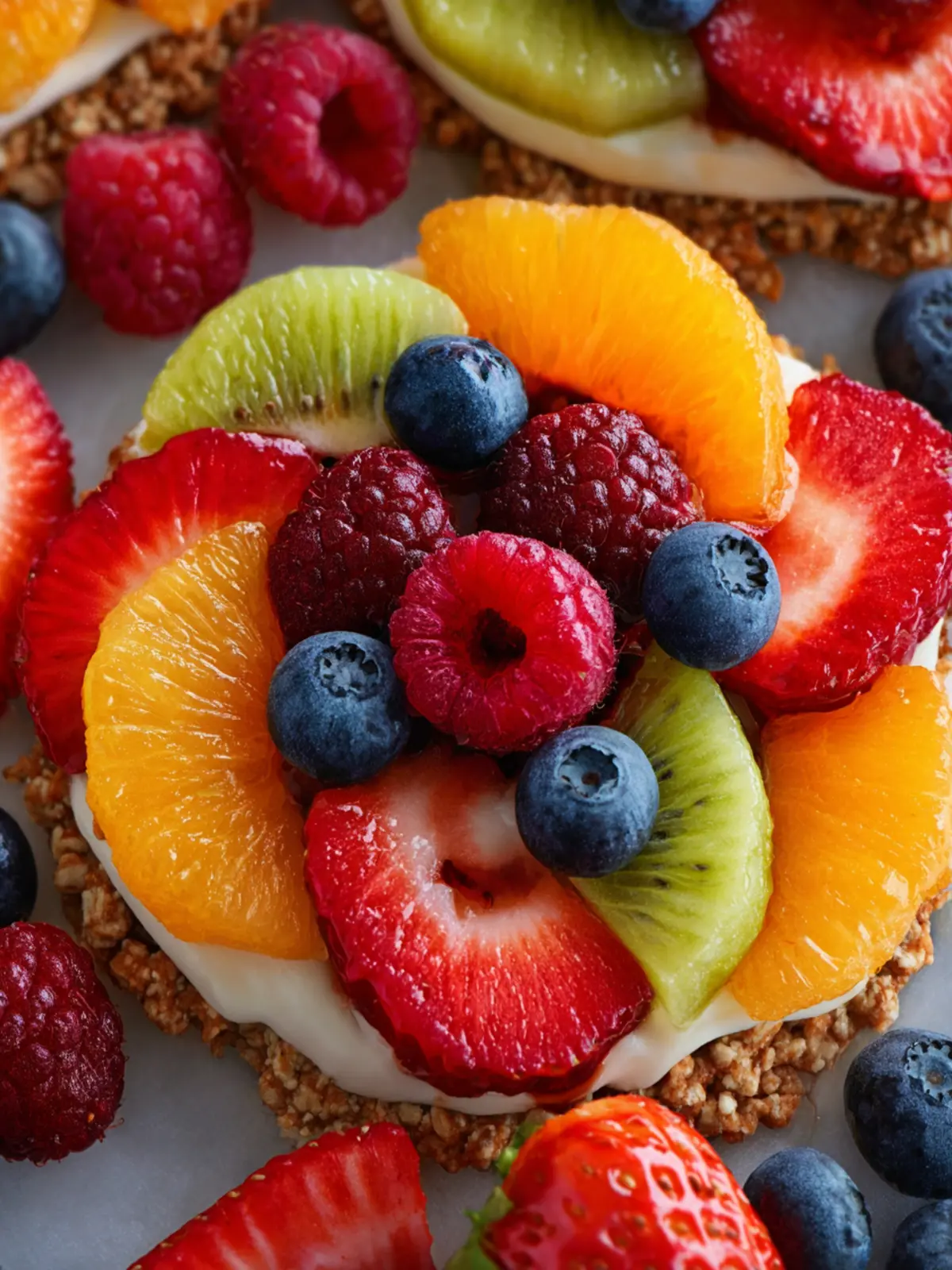 Fruits: The star of our healthy fruit pizza is, of course, the fresh fruit! Choose a vibrant mix like berries, kiwi, and bananas for a burst of flavor and color. They provide vitamins and antioxidants, making every bite a health boost.