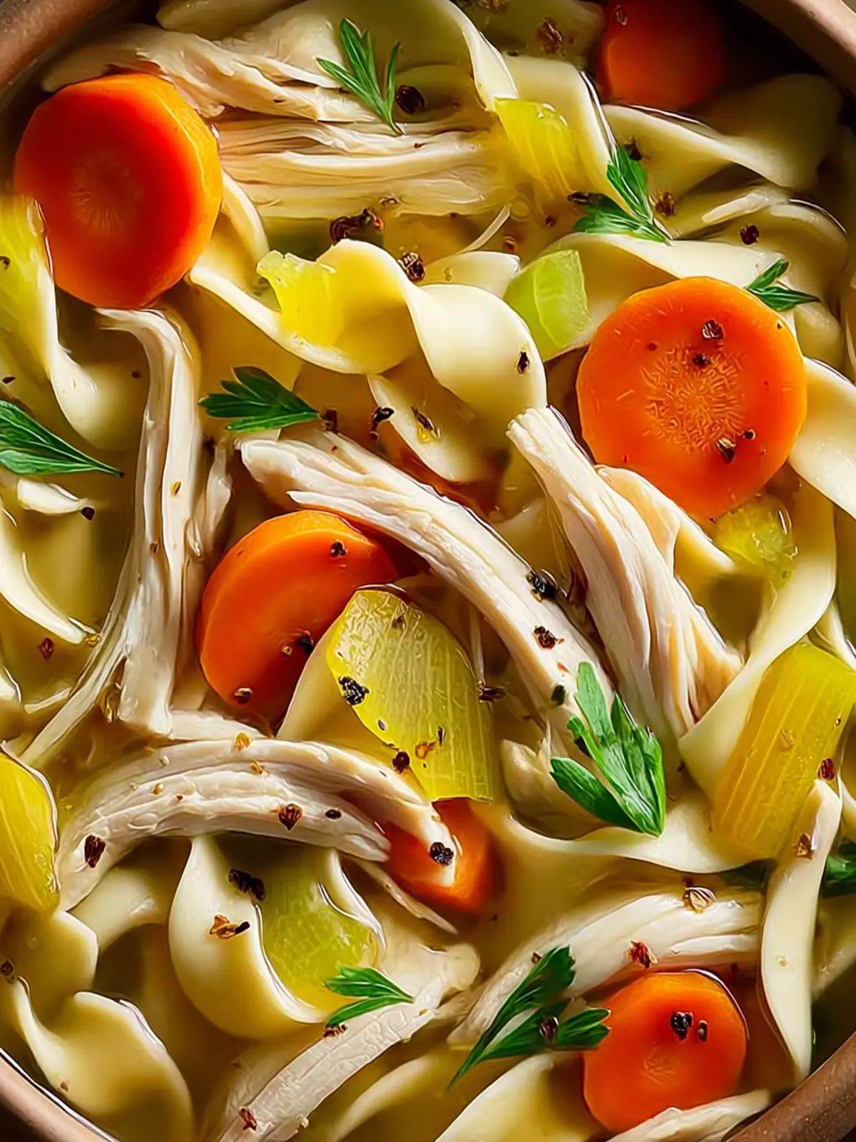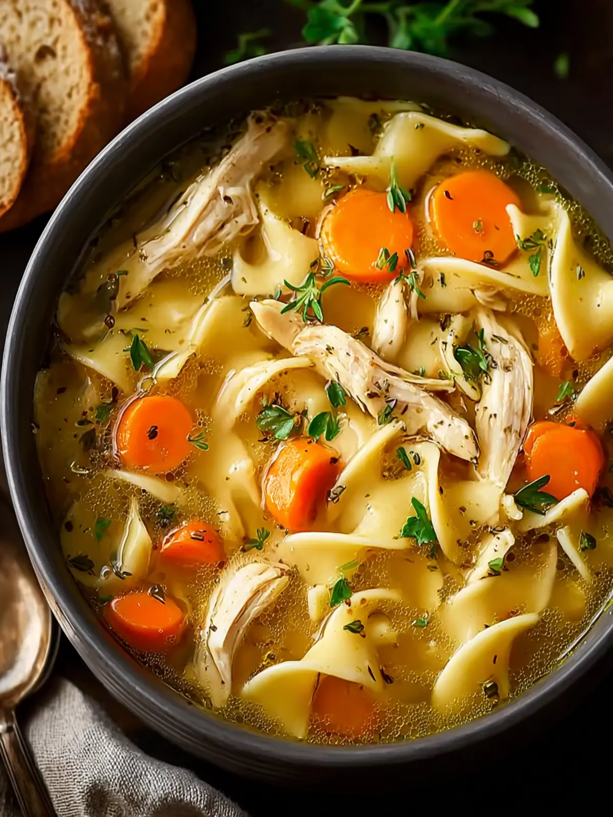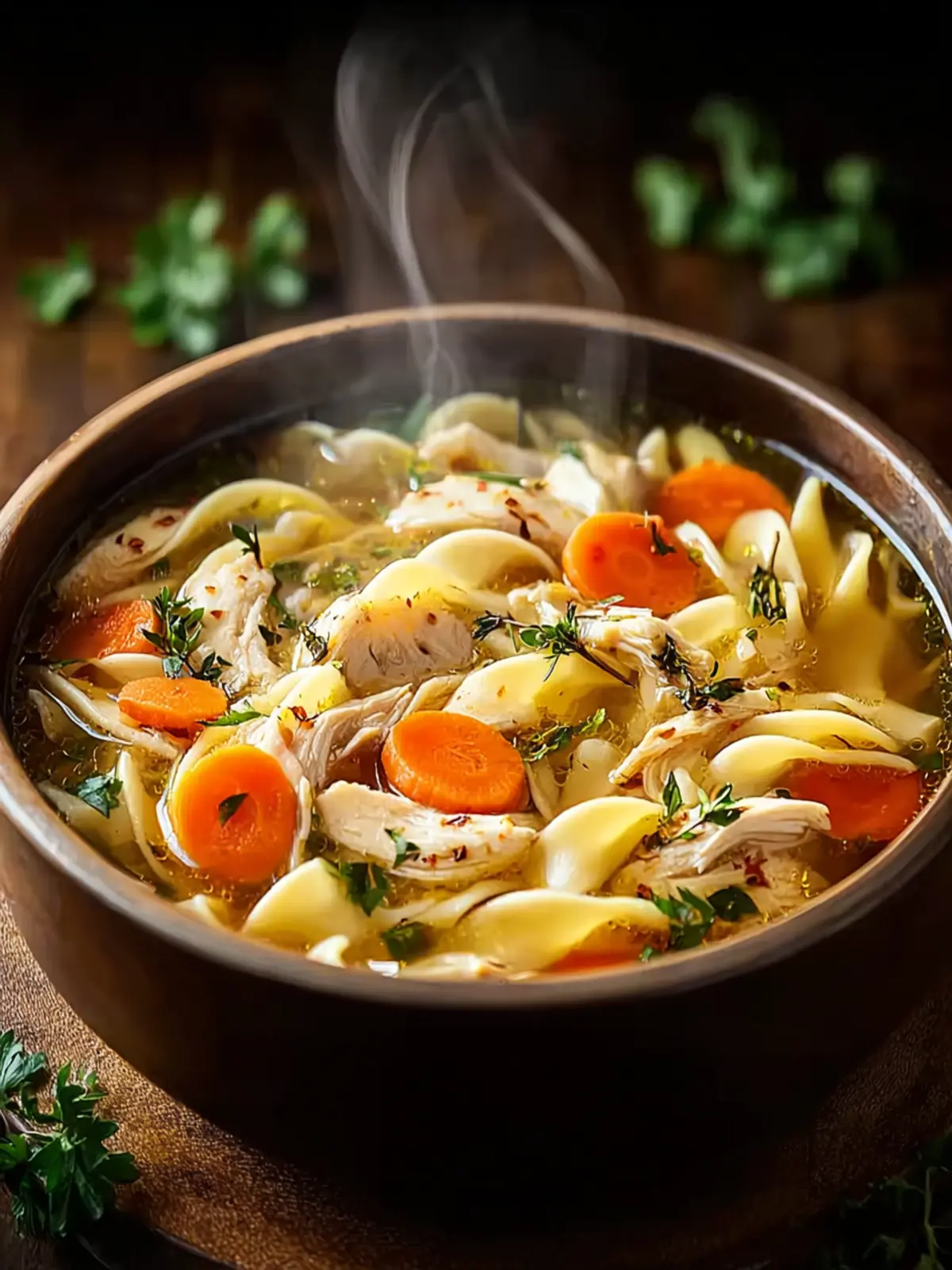 Homemade chicken noodle soup is the embodiment of comfort food, a warm hug in a bowl on a chilly day. There’s something undeniably nostalgic about the aroma of simmering broth, tender chicken, and wholesome vegetables wafting through your kitchen. This recipe elevates the classic to new heights, making it an essential addition to your culinary repertoire.