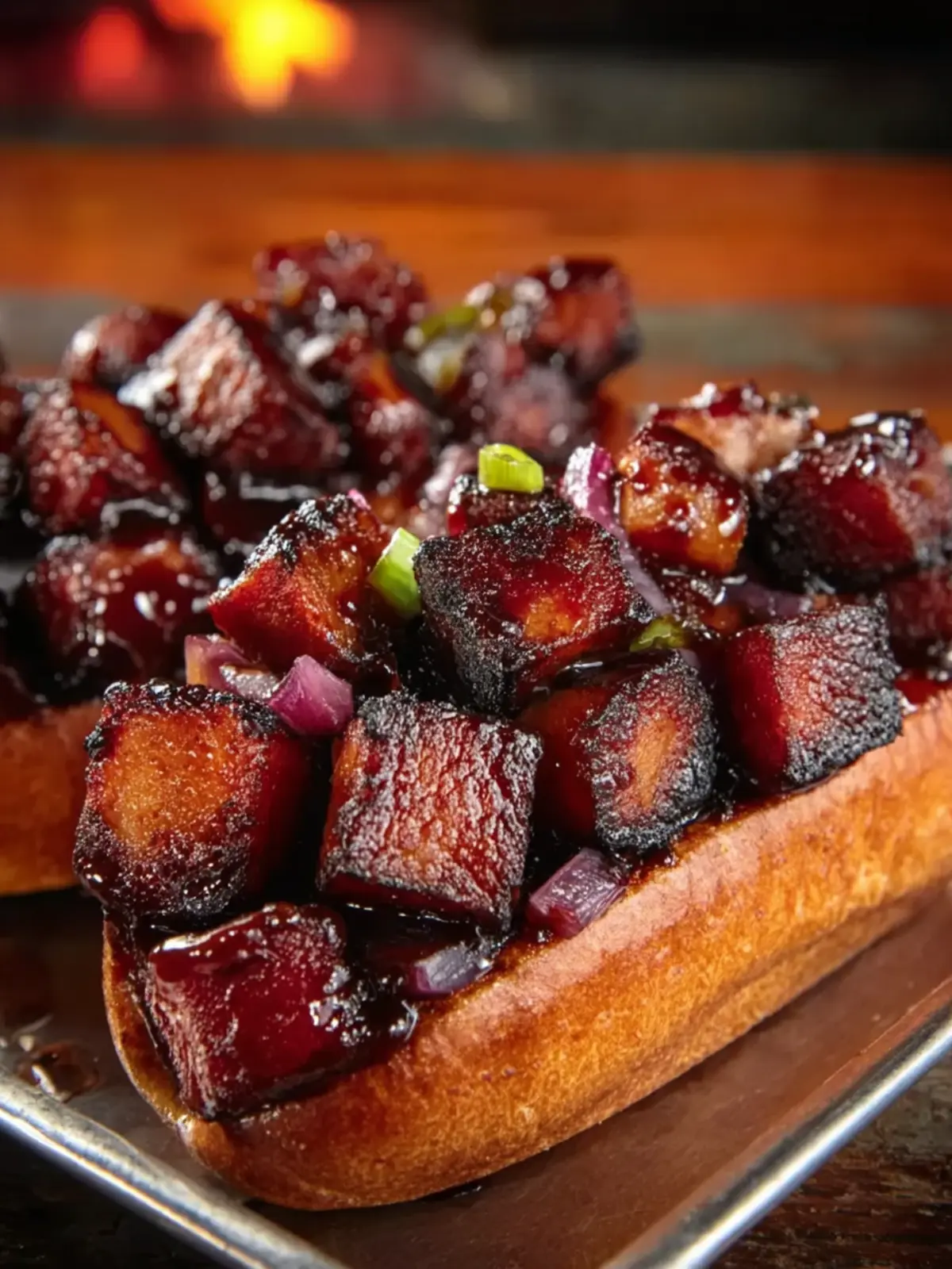 During the last few minutes of cooking, baste the burnt ends with extra barbecue sauce. This caramelizes nicely on the surface and adds a mouthwatering glaze.