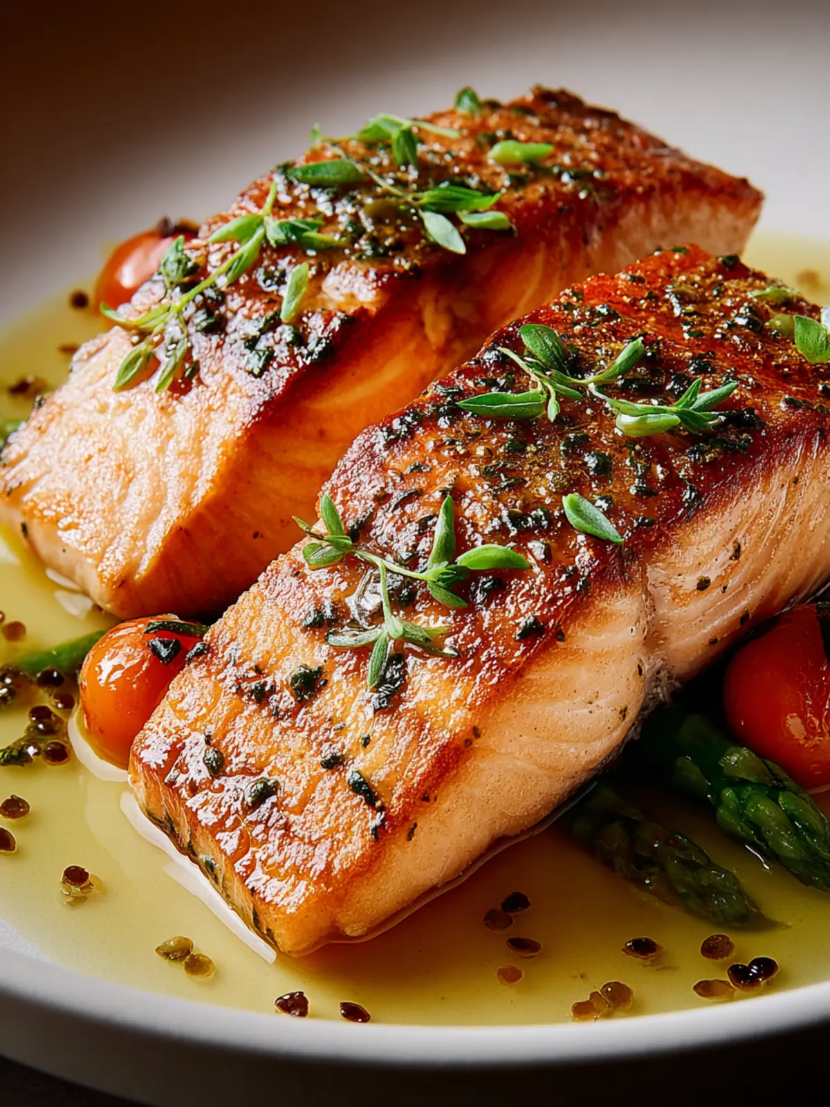 A delicious and easy recipe for pan-seared salmon fillets, crispy on the outside and tender on the inside.