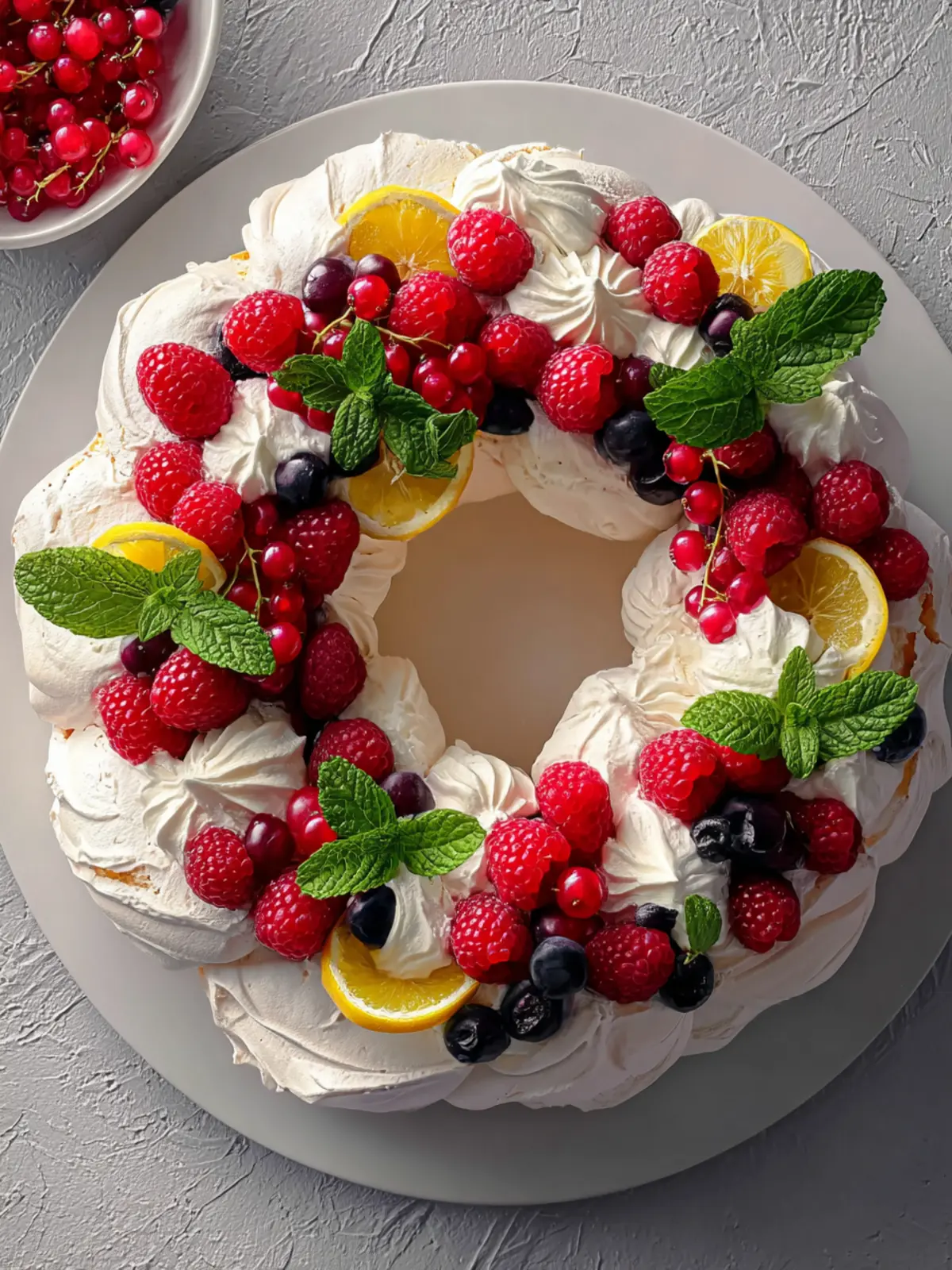 Embrace the joy of baking and treat yourself to this sumptuous, Irresistible Pavlova Wreath that is not just dessert but a delightful experience!