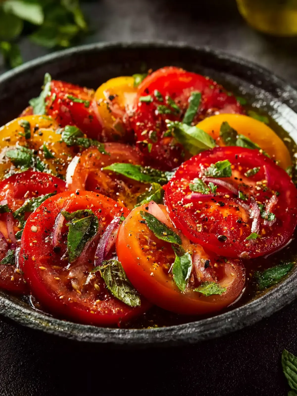 Versatility: Perfect as a side dish, topping for bruschetta, or a base for grain bowls, the marinated tomato salad adapts to fit any culinary need. You can easily adjust the marinade to suit your taste or pair it with different proteins.