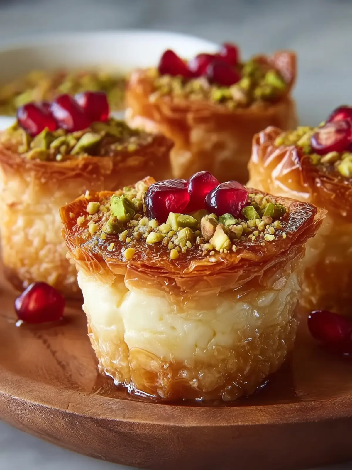 Garnishes and Toppings: For an extra layer of flavor, drizzle a bit of honey or maple syrup atop your mini baklava cheesecakes. A sprinkle of finely chopped pistachios or walnuts can also add a lovely crunch.