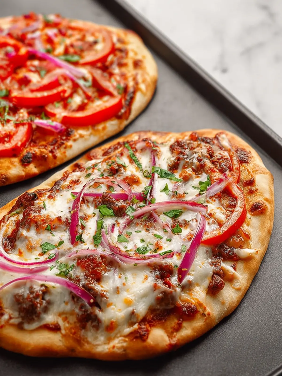Toppings: Customize your naan bread pizza with a variety of toppings. I enjoy using fresh vegetables such as bell peppers, red onions, and cherry tomatoes for color and flavor. Meats like cooked chicken or pepperoni add a savory element, while fresh herbs—like basil or cilantro—give that final burst of freshness.