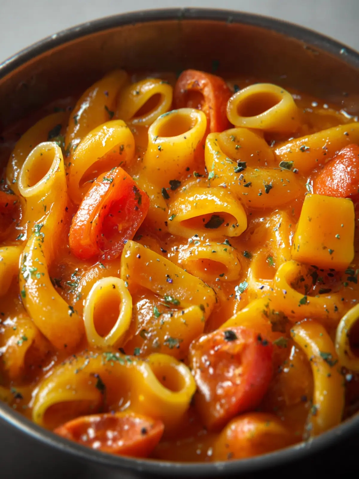 - Cook uncovered, stirring regularly to prevent sticking, until the pasta is tender and the potatoes are soft enough to partially break down, creating a thick, stew-like consistency.