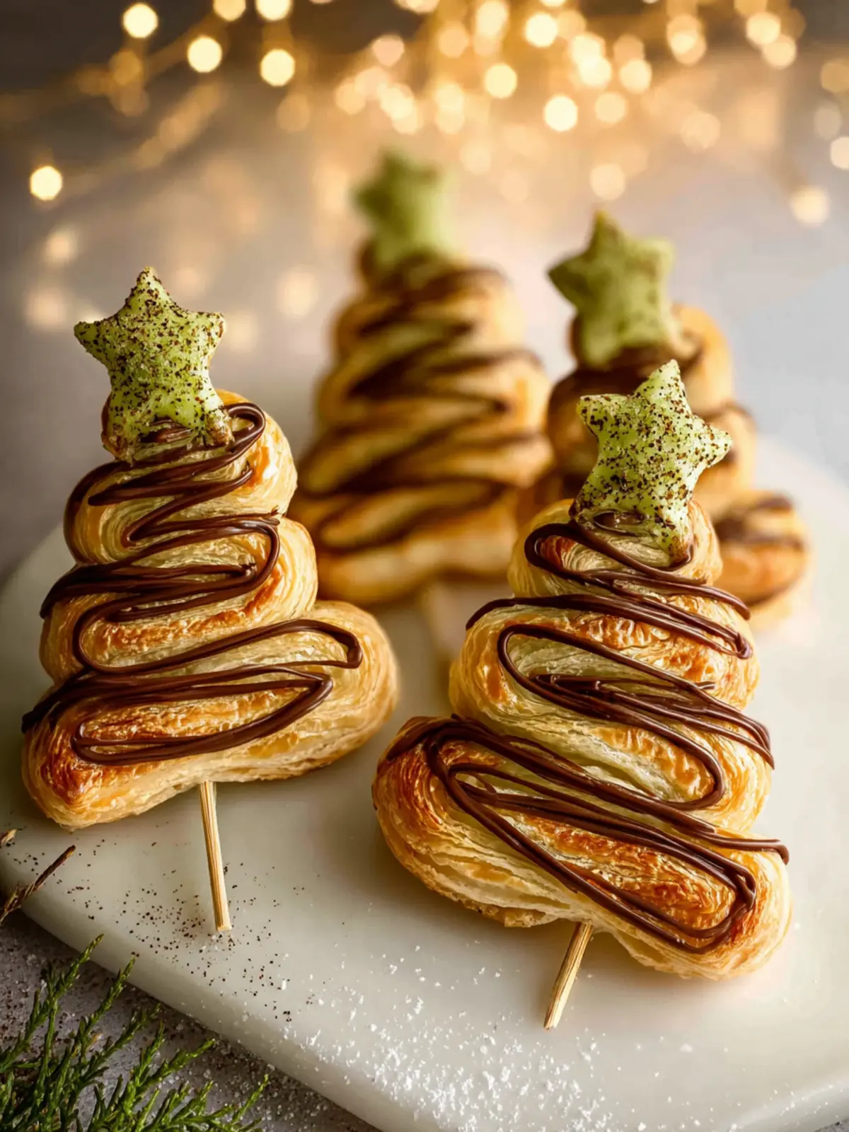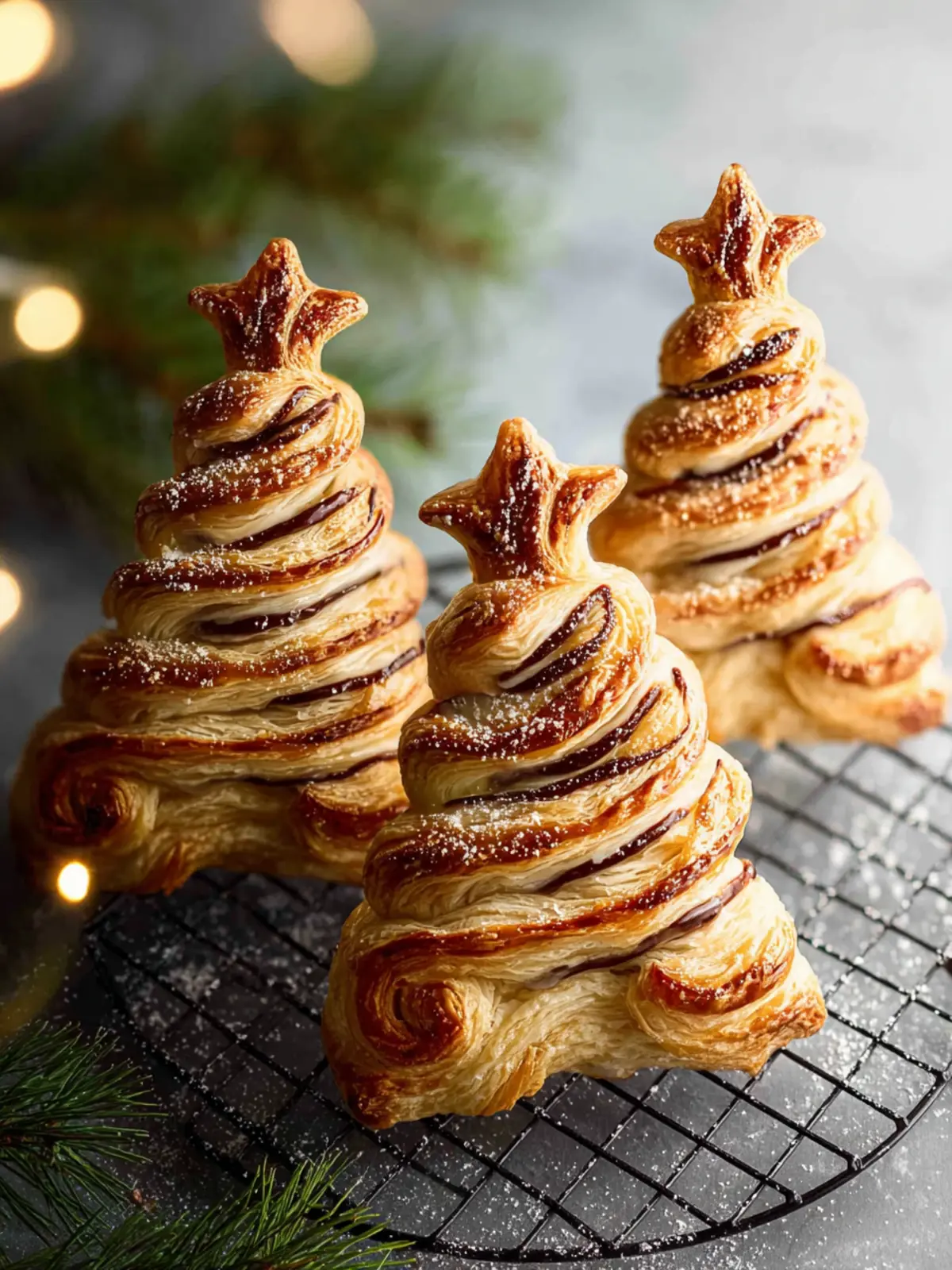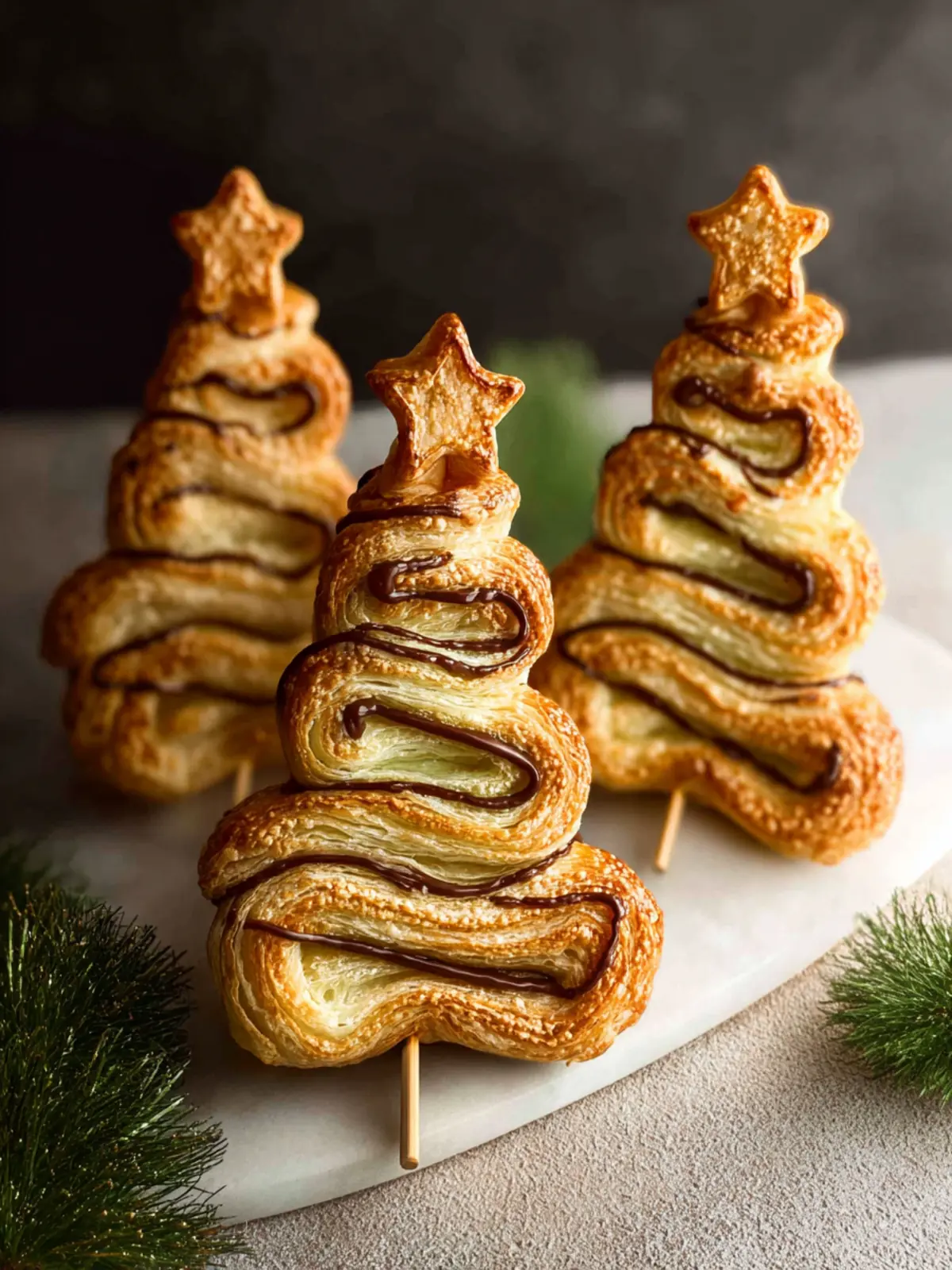 Delicious chocolate-filled puff pastry trees, perfect for a festive treat.