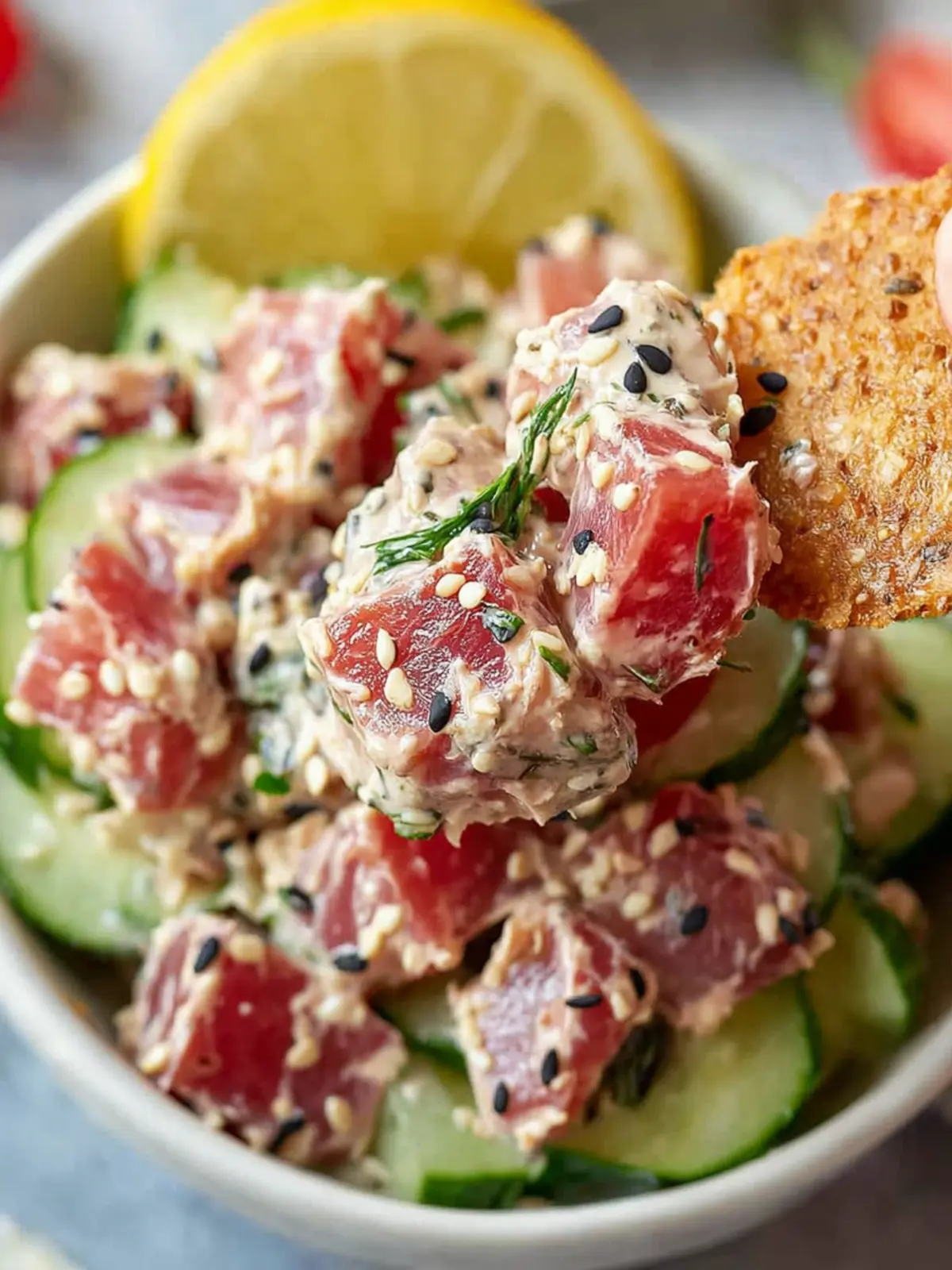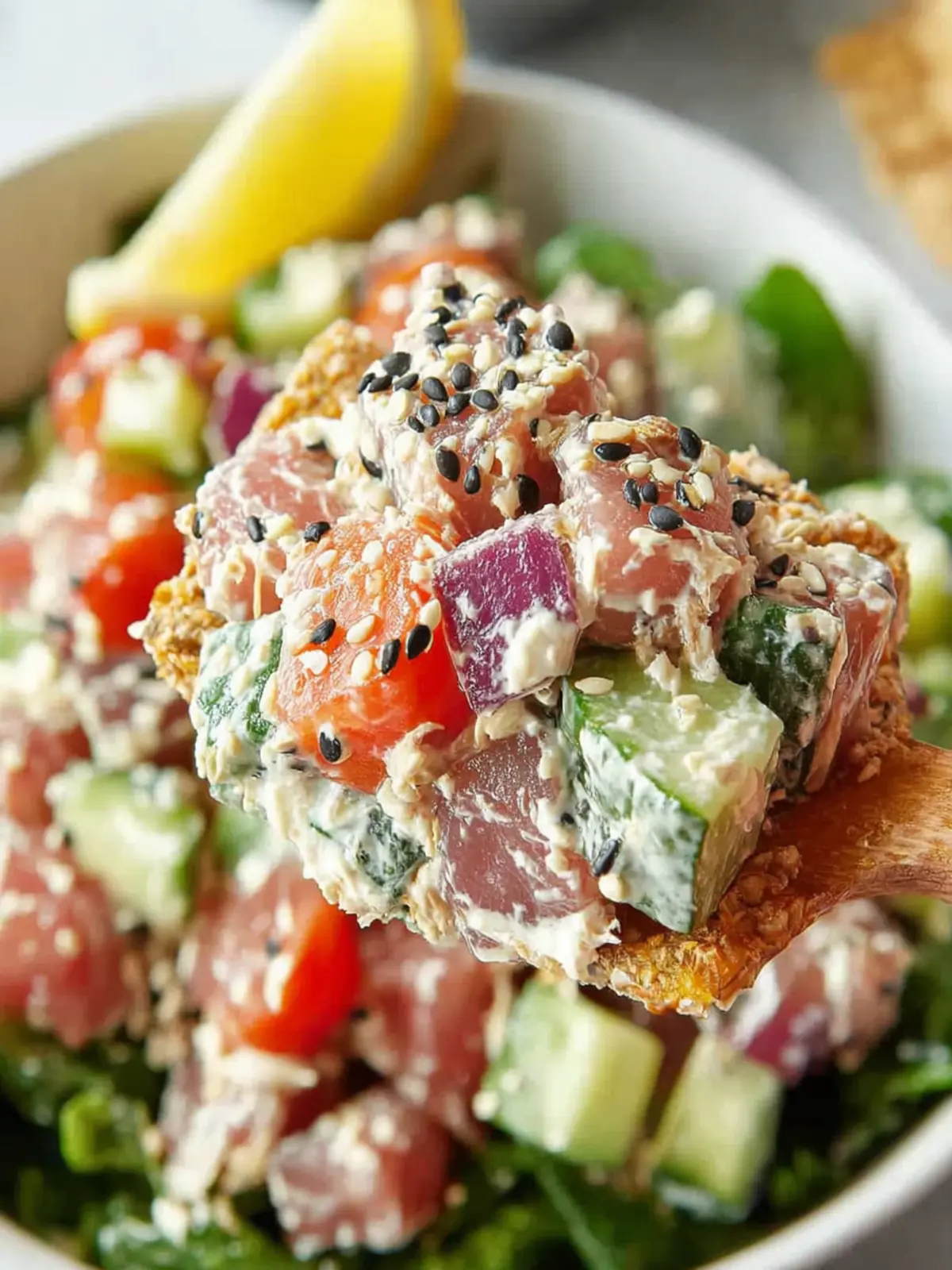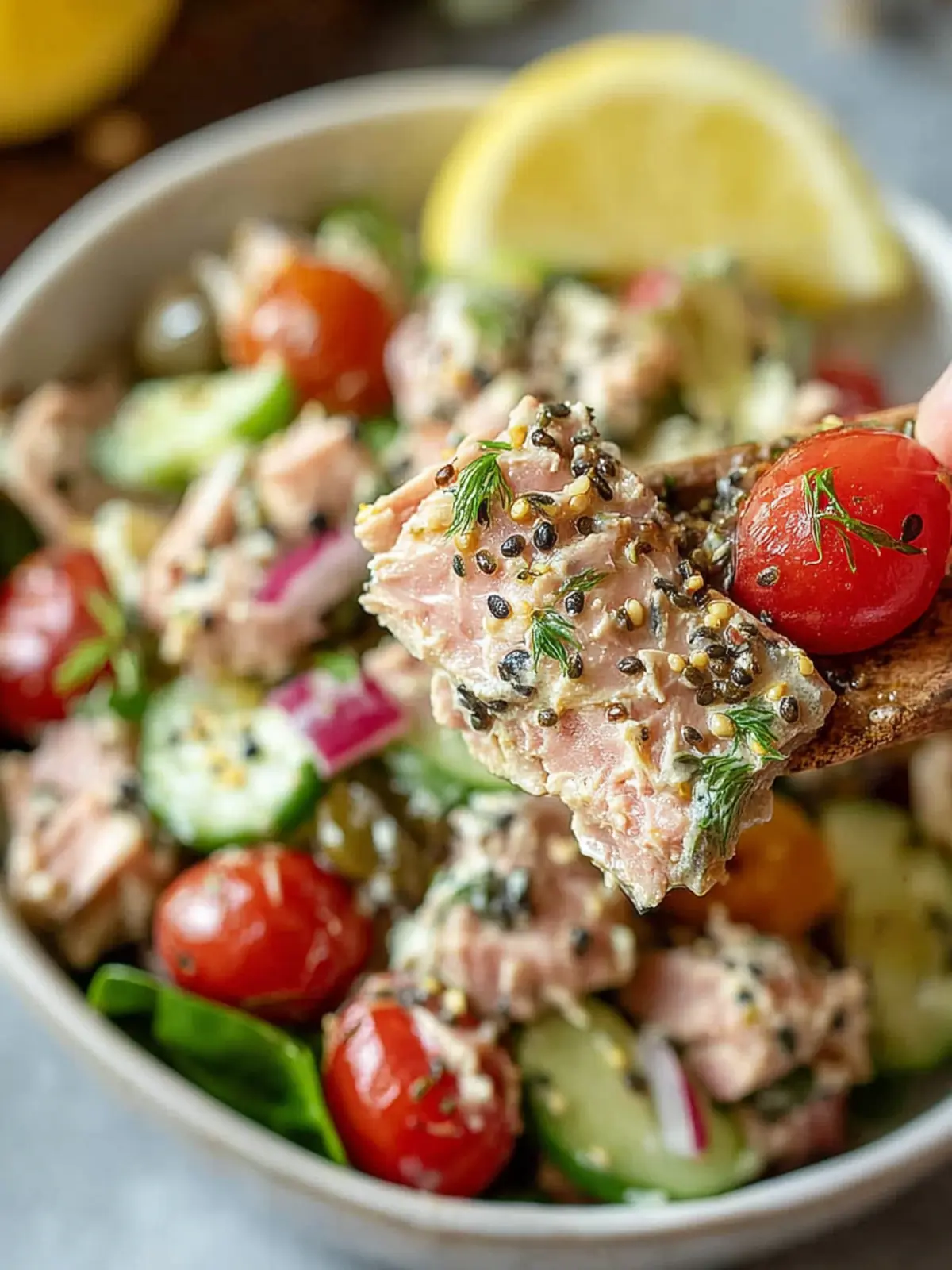 A refreshing tuna salad packed with fresh vegetables and herbs.