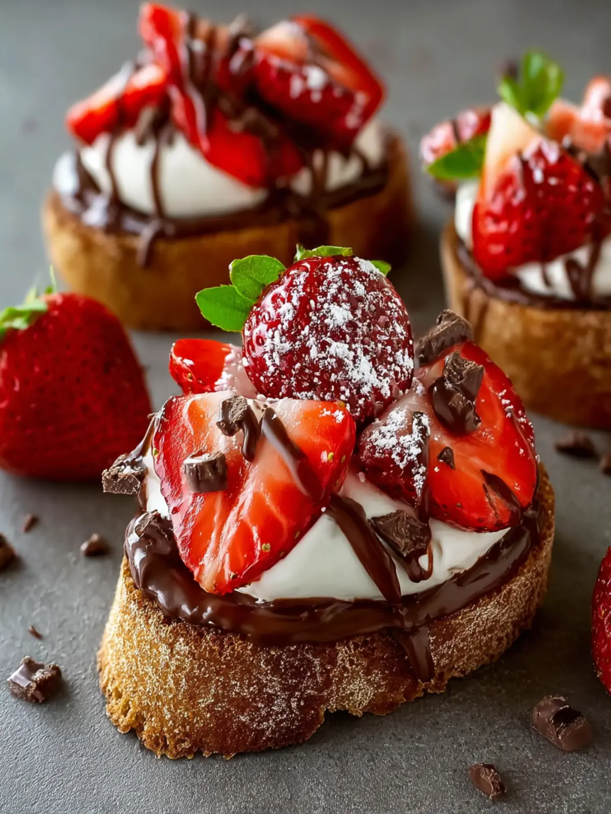 - Textural Contrast: The crunch of the toasted bread complements the soft strawberries and creamy chocolate, creating a mouthwatering texture journey.